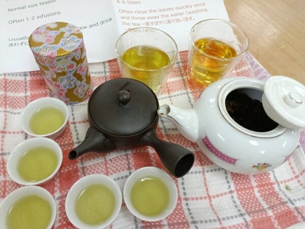 煎茶とゴールデンウーロン茶の味や香りの比較、煎茶の効用について英語で学びました。