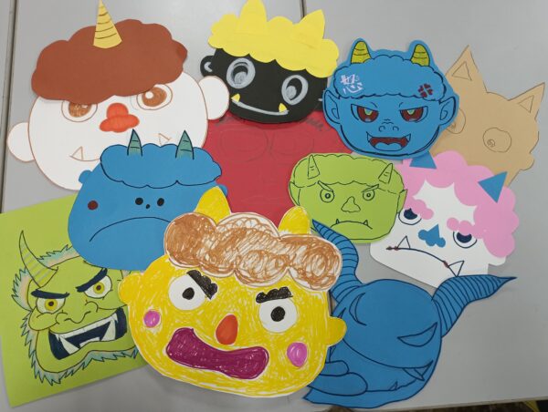 みなさん思い思いに鬼を描き、「鬼は外!」と大きな声をだして豆をぶつけてスッキリ😄